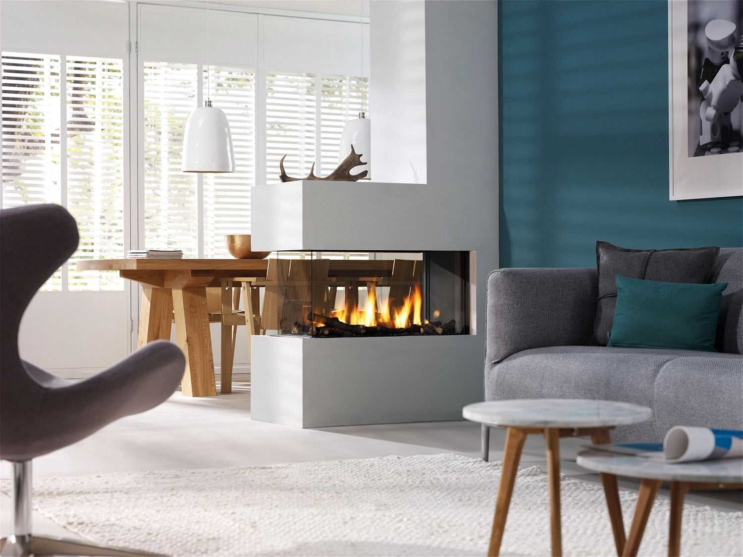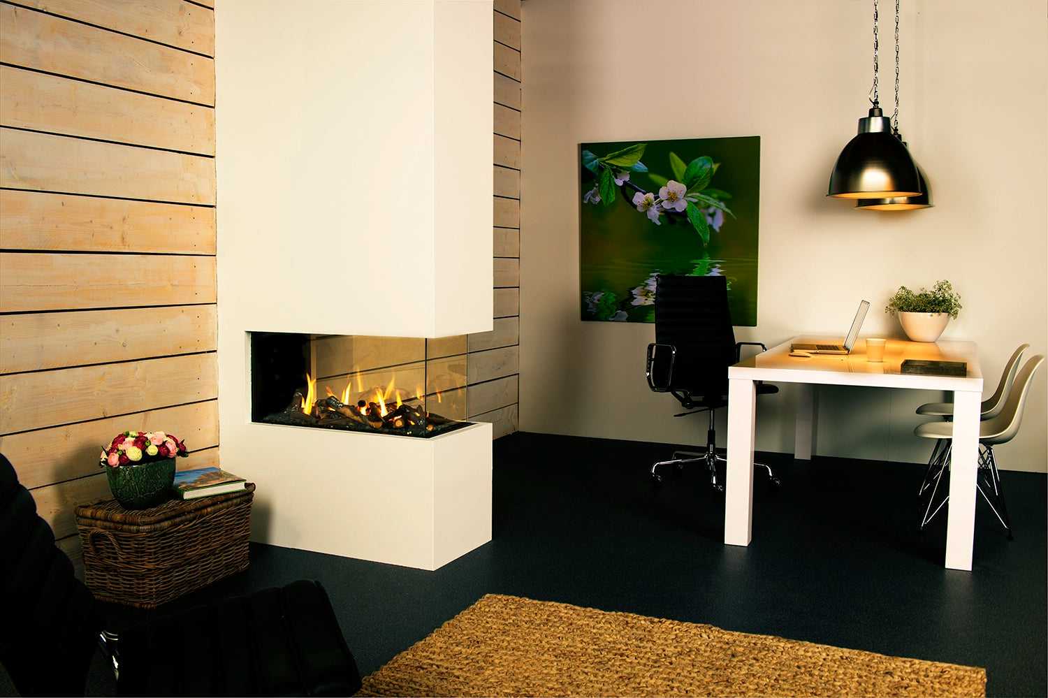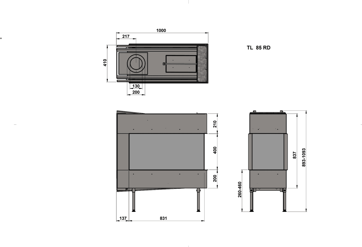 Standardversjonen av denne peisen har en brennerbase av trekubber og er utstyrt med dobbel brenner. Du kan også velge en integrert LED-base for å skape enda mer stemning. Trimline 83 RD finnes også i tunnelversjon. I tillegg leveres den med Ecomax-fjernkontroll, og du kan velge å legge til WiFi-betjening med Trimline Fires-appen.