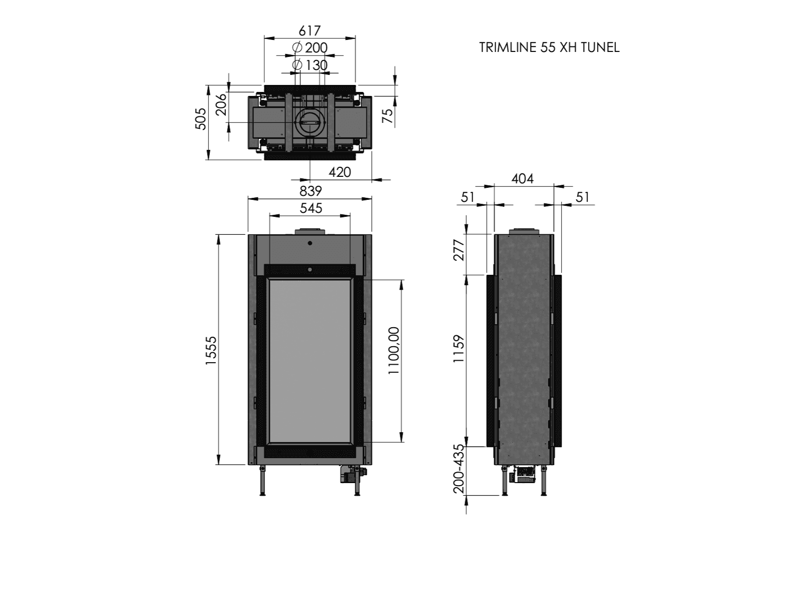 Med en tunnelbrann kan du nyte utsikten på bålet fra mer enn ett rom. En tunnelbrann trekker all oppmerksomhet, uten å trekke den fra resten. Tvert imot forsterker det hele følget. Trimline Fires peiser passer til enhver stil og design. Trimline 55XH er 1,10 meter høy, noe som gjør den til et ekte blikkfang i rommet.