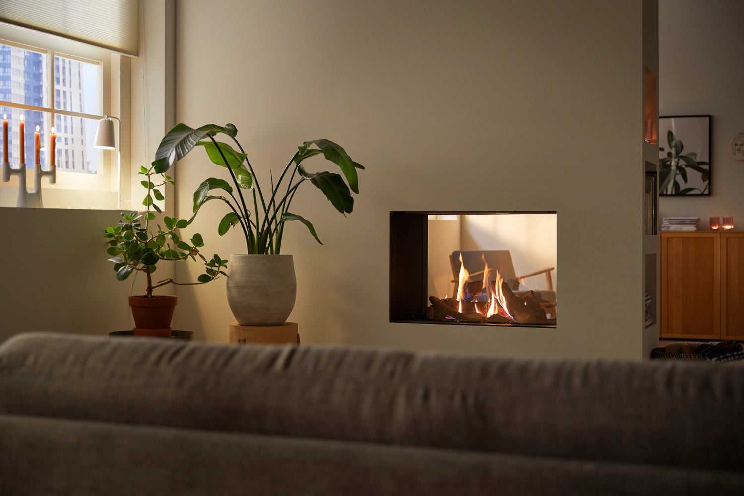 Standardversjonen av denne peisen har en brennerbase av trekubber og er utstyrt med dobbel brenner. Du kan også velge en integrert LED-base for å skape enda mer stemning. Tunnelpeisen Trimline 83 finnes også i romdelerversjon. I tillegg leveres den med Ecomax-fjernkontroll, og du kan velge å legge til WiFi-betjening med Trimline Fires-appen.